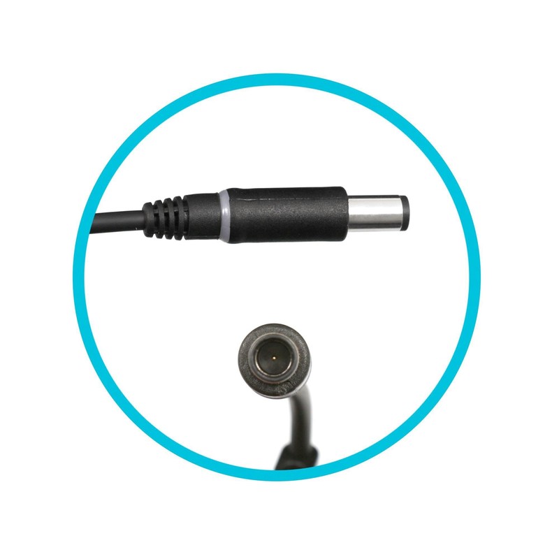 - Plug type: round, connector shape: 180° straight, outer diameter of the connector: 7.4 mm, inner diameter of the connector: 5.0 mm, length of the connector: 12.0 mm, pin in the connector: yes, length of the connection cable from the power supply to the notebook: approx. 1.75 m