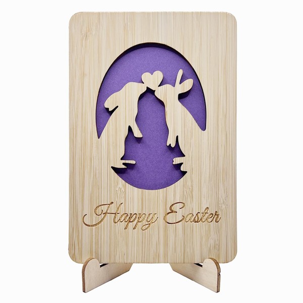 - Adorable Laser-Cut Design:This easter card features two bunnies and a heart motif created through intricate laser-cut craftsmanship, complete with “Happy Easter” to brighten up your holiday celebrations.