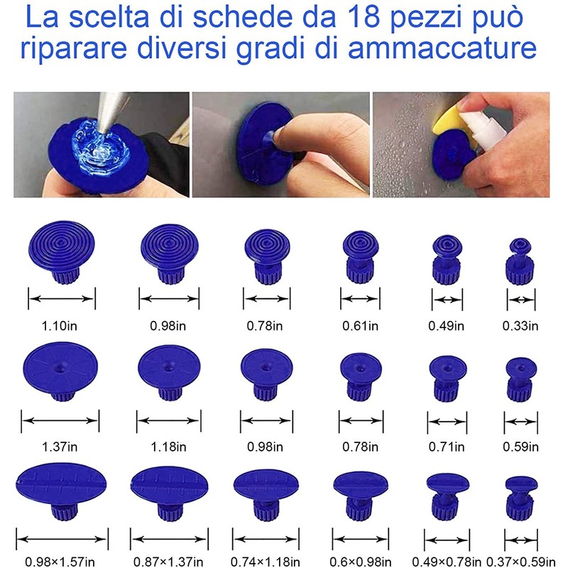 - 【Utility】Paintless auto dellen reparatur set mit 18 unterschiedlich großen Laschen passend für 0,47 bis 1,9 Zoll breite Dellen. 18 unterschiedlich geformte und große Laschen passen zu verschiedenen Formen von Dellen zum Zurückziehen.