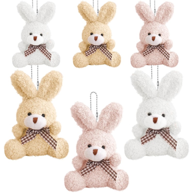 dellyy Rabbit Pendant Plush x 6 Pieces, Small Plush Rabbit Pendant, Plush Rabbit Pendant for Easter, Key Ring Rabbit Plush, Plush Rabbit Bag Pendant, Easter Bunny Cuddly Toy (A)