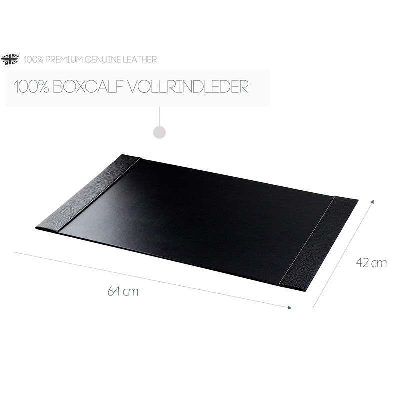 DELMON VARONE Personalised Desk Mat with 2 Side Compartments Premium Leather Soft Grain Black Non-Slip Desk Mat Washable Desk Mat as Mouse Mat 64 x 42 cm