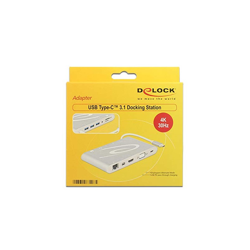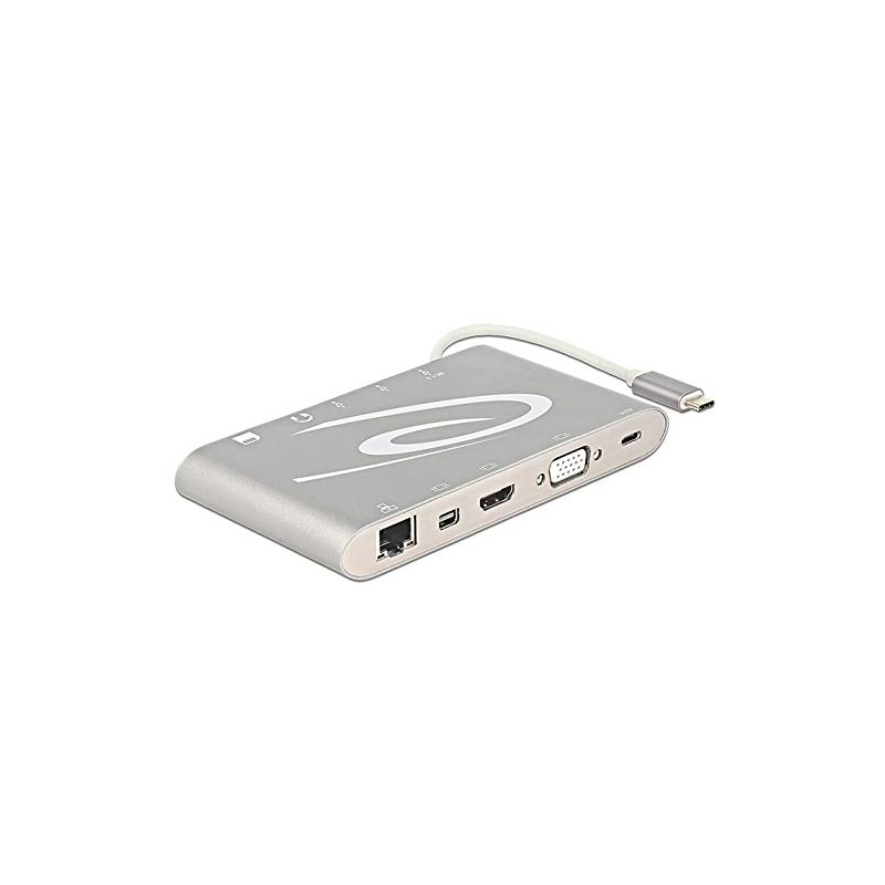 • Front side: 1 x Gigabit LAN 10/100/1000 MB/s RJ45 female, 1 x mini DisplayPort 20 pin female, 1 x HDMI-A 19 pin female, 1 x VGA 15 pin female, 1 x USB Type-C female (power supply)