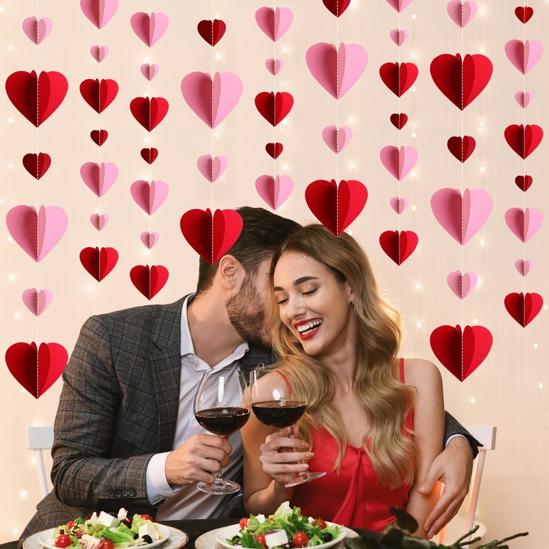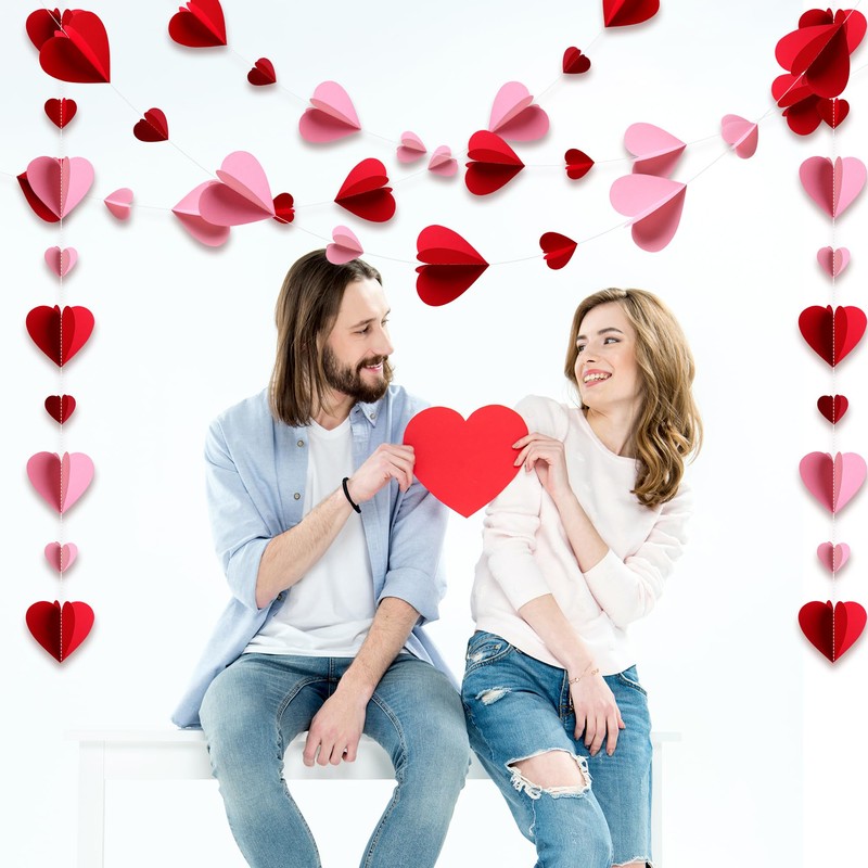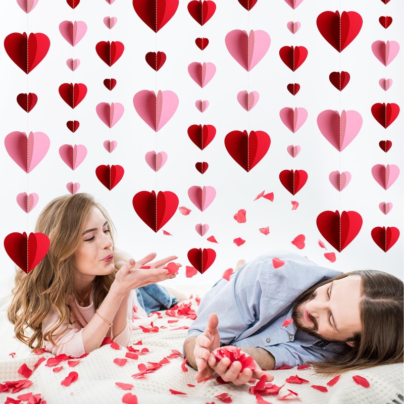 - Package Includes: You will receive 10 packs of 3D red pink heart paper garland, each with 9 hearts, 3.9 inch for large hearts, 2 inch for small hearts, each length of 47.2 inch, a total length of 39 ft, suitable for your home and party decoration, creating a romantic Valentine's Day atmosphere.