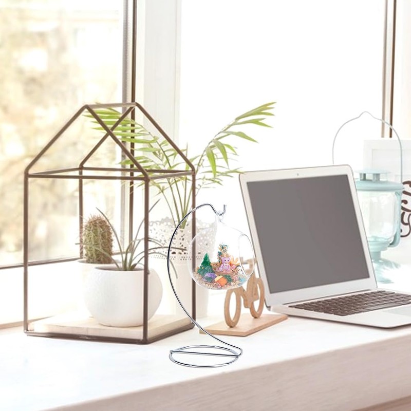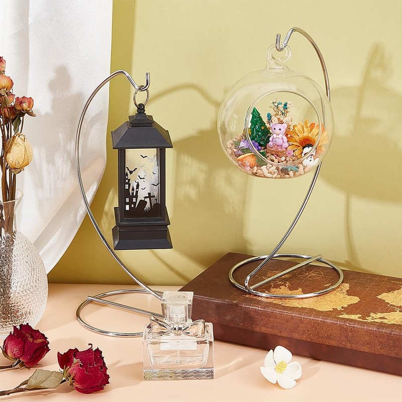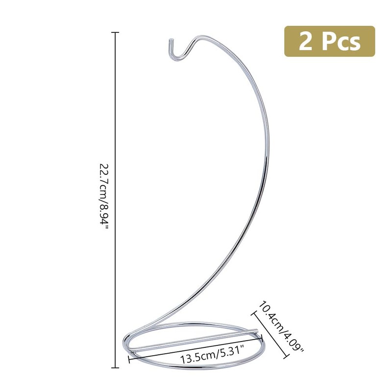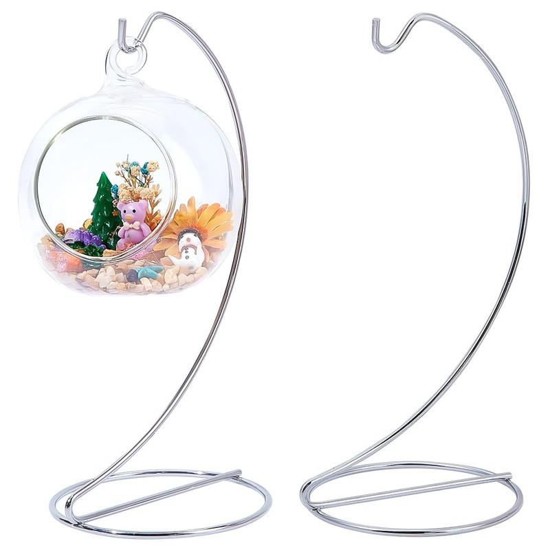 DELORIGIN 2pcs Christmas Ornament Display Stand Holder Glass Globe Silver Iron Wire Stand Hanging Hook Holder Rack for Bauble Lanterns Hanging Air Plant Terrarium Witch Ball Decor DIY Craft Display