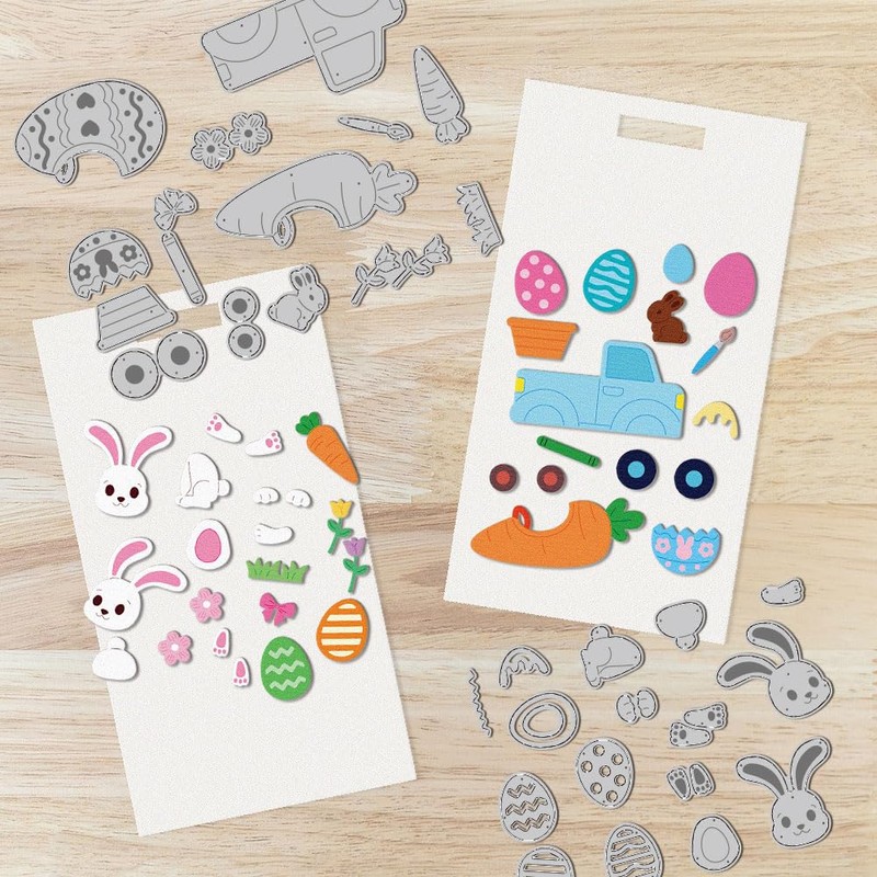 - Package includes: package comes with 2 sets of Easter bunny/rabbit car cutting dies. It measures 108 x 145 x 0.8 mm and 108 x 118 x 0.8 mm. Extensive content and unique styles that you can use and replace in different crafts, or you can share them with friends, and family members
