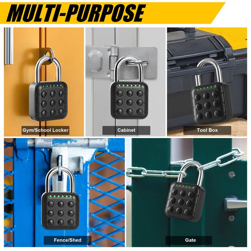 - Waterproof Padlock: The IP67 waterproof rating ensures effective operation in any weather condition, providing robust security both indoors and outdoors.