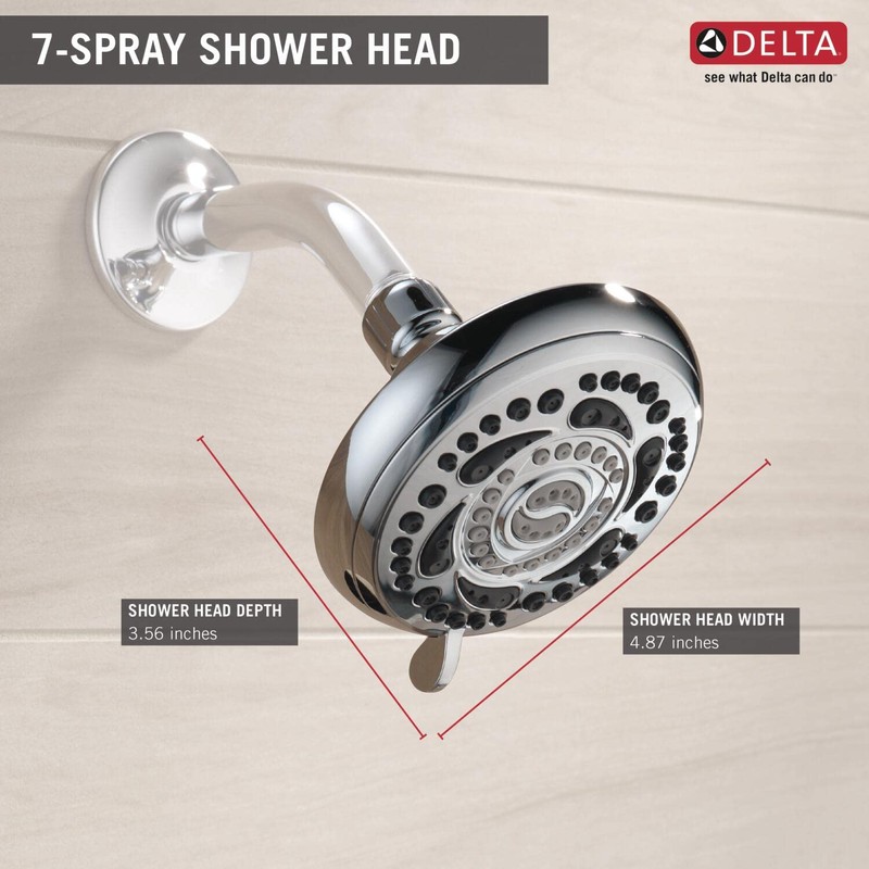 Delta 75784 Universal Shower Head, Chrome, 7 Settings, Modern Style, Round Shape