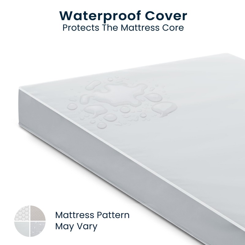 - WATERPROOF COVER: Waterproof for easy cleaning | Pattern on mattress cover may vary | Breathable fiber core made from recycled bottles delivers ideal firmness level while helping save over 300 bottles from the landfill