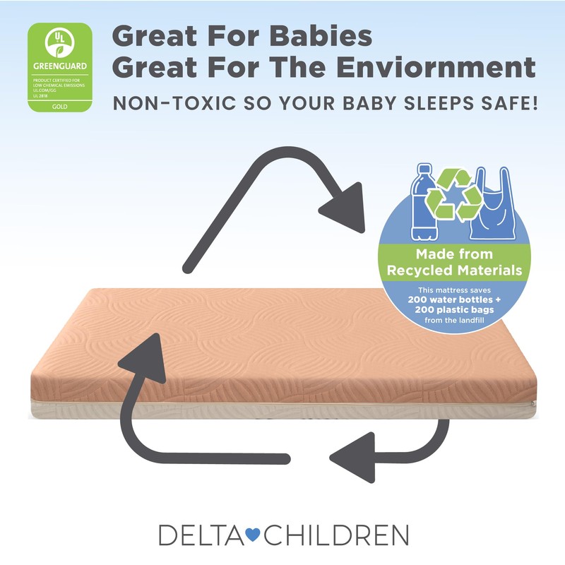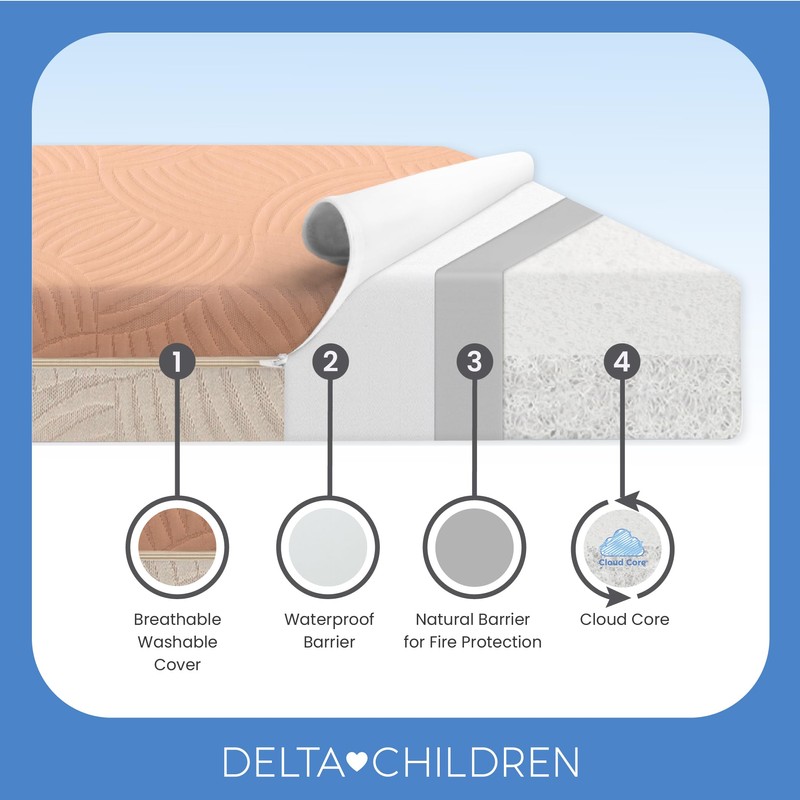 Delta Children Summer Breeze Mattress - Breathable Baby Crib & Toddler Mattress with Cloud Core - Machine Washable Cover - GREENGUARD Gold – Waterproof - Sustainably Sourced Core, Apricot/White