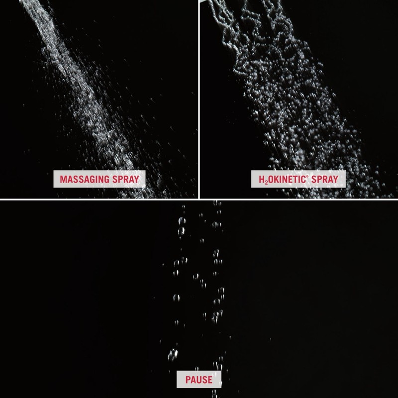 - 4 POWERFUL SPRAY OPTIONS. Hand shower spray settings include H2Okentic PowerDrench spray, full body spray, massaging spray, and pause