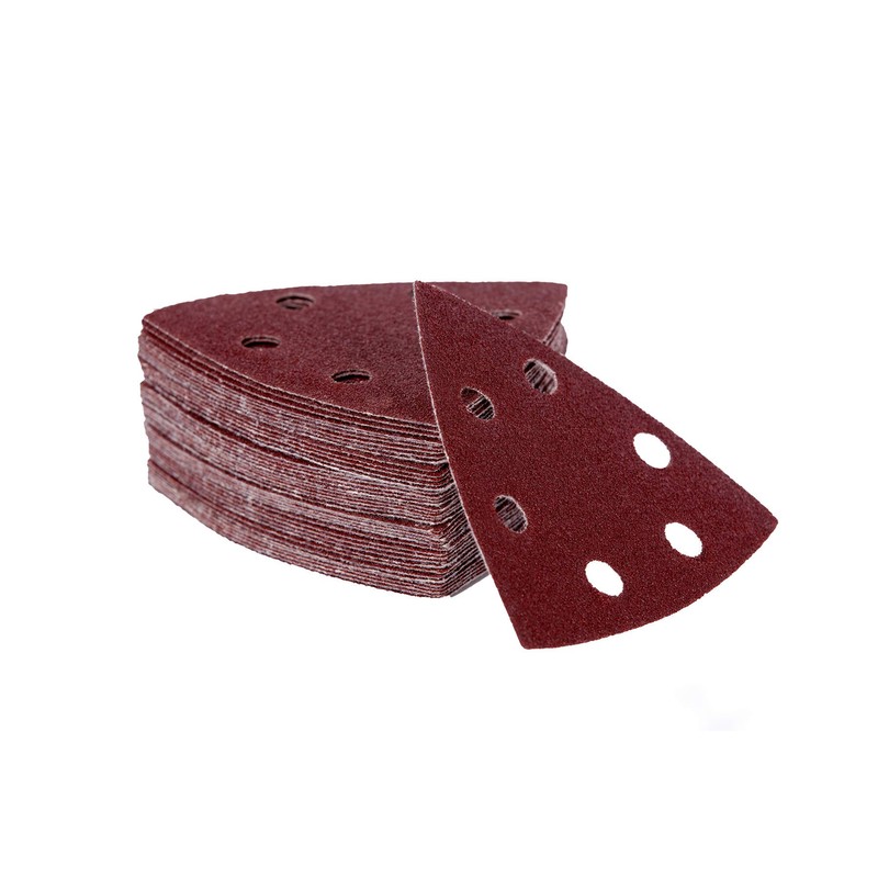 120 sheets of sanding triangles, 93 x 93 x 93 mm, 6-hole for Delta sanders, 20 x grit 40, grain 60, grain 80, grain 120, grain 180, grain 240, abrasive corundum, high-quality professional quality for various surfaces, fine and score-free sanding, universally applicable. Thanks to its shape, perfect for sanding even in corners
