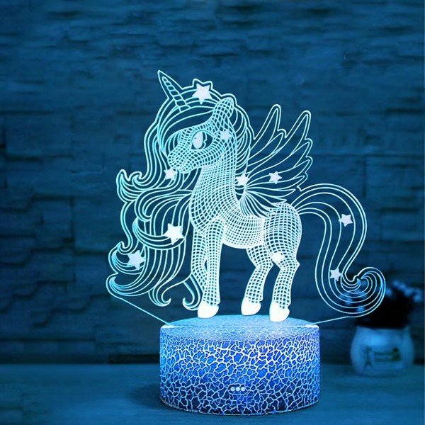 - Enchanting 3D visual effects: Bring the magic of unicorns into your room with our creative unicorn 3D visual effects night light. Watch as the bright colours and intricate details come to life in 3D space. They create a captivating atmosphere and present brilliant and colourful light effects that will accompany you perfectly every night.