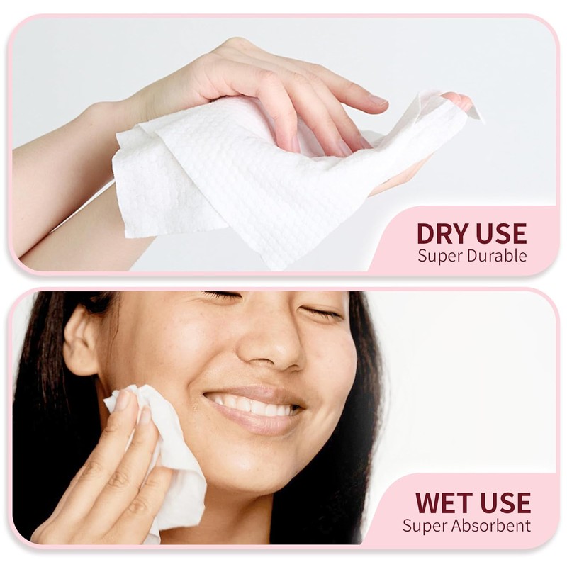 - Dual-Purpose (Dry & Wet) Towels: Designed for both dry and wet use, these ultra-absorbent facial towels are perfect for makeup removal, facial cleansing, and skincare routines. Simply add water for a soft, refreshing wipe that delivers a deeper clean, ideal for everyday use.