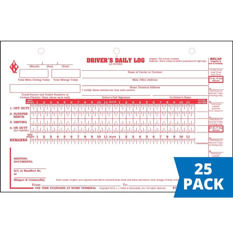 Deluxe Duplicate Driver Daily Log 25-pk. with Detailed DVIR & Daily Recap - Shrinkwrapped Loose-Leaf Format, 2-Ply with Carbon, 8.5" x 5.5", 31 Sets of Forms Per Unit - J. J. Keller & Associates
