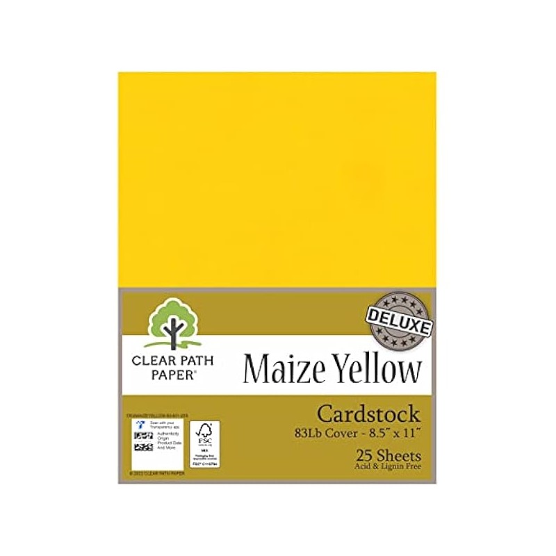 Deluxe Maize Yellow Cardstock - 8.5 x 11 inch - 83Lb Cover - 25 Sheets - Clear Path Paper