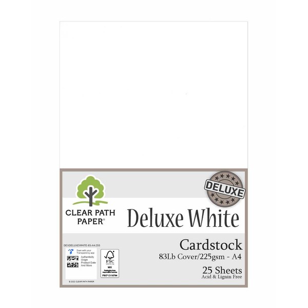 Deluxe White Cardstock - A4-83Lb Cover / 225gsm - 25 Sheets - Clear Path Paper