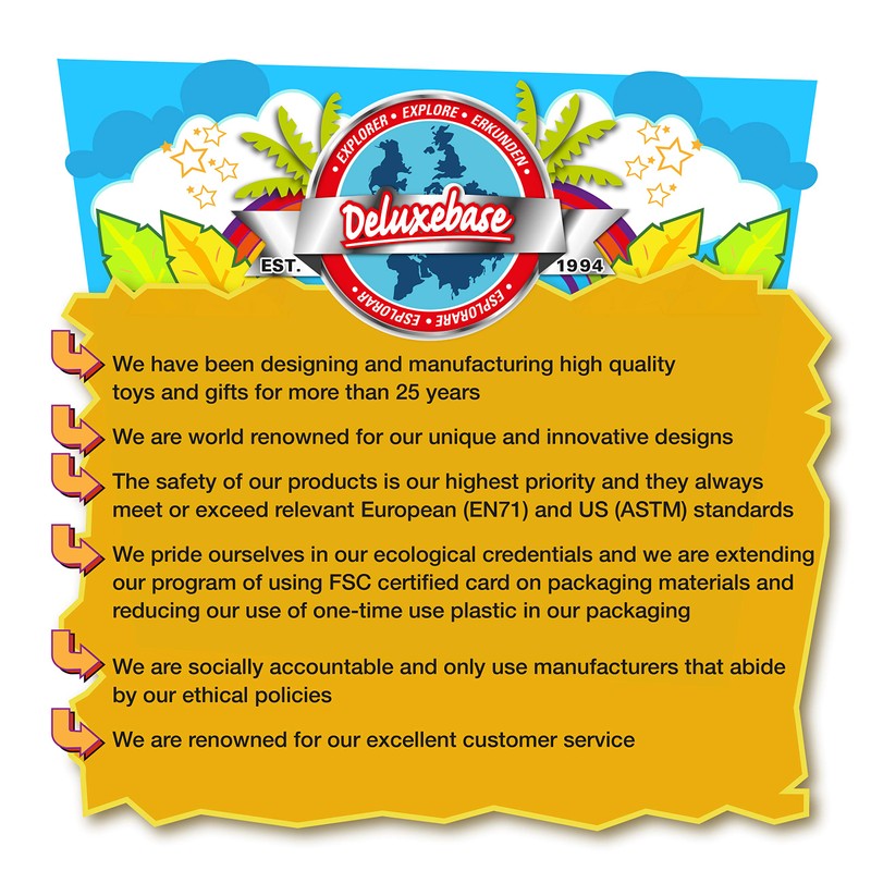 - BUY WITH CONFIDENCE: With over 25 years of experience, Deluxebase specializes in designing fun and educational toys, and gifts for Kids and adults, in the UK, the US, and Europe. We carefully crafted all of our products by maintaining the highest quality and safety, so that you can purchase our products with confidence.
