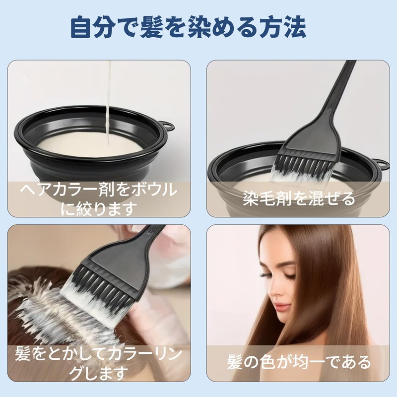 - Product Features: The bristle brush uses an ergonomic handle that is easy to hold. Hair Color Comb has a sharp handle to easily separate and separate hair. The hair dye bowl is collapsible for easy storage and storage
