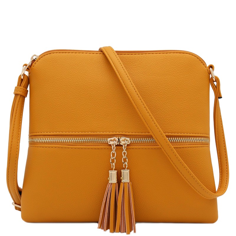 DELUXITY Lightweight Medium Crossbody Bag with Tassel (Mustard)