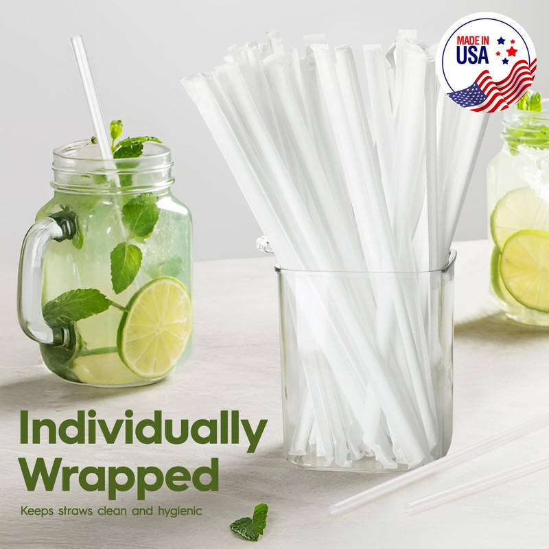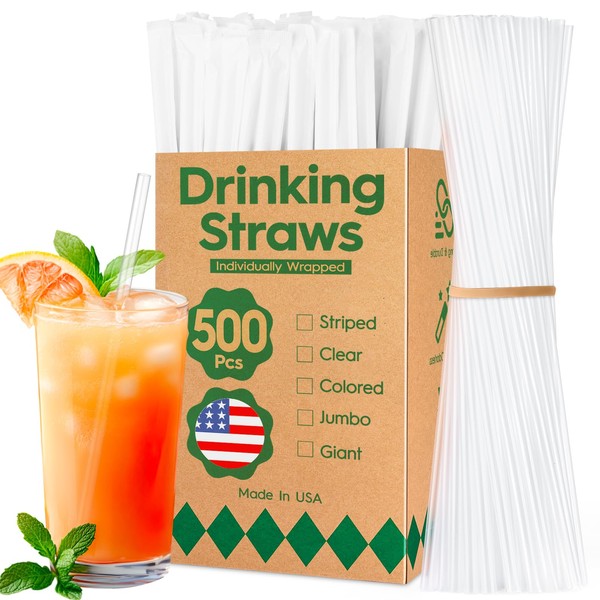 Delxo 500 Count Individually Wrapped Clear Plastic Straws - 10.25 Inch Long, 0.23 Inch Diameter - Disposable Drinking Straws for Party, Every Occasion - Made in USA