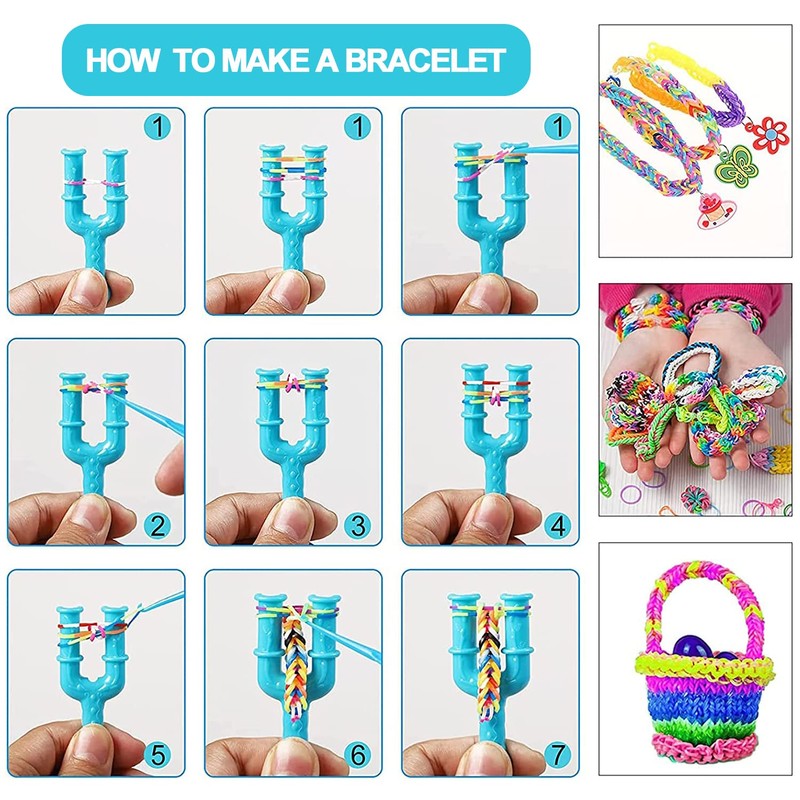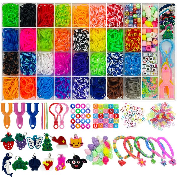 • Rubber bands for bracelets: This handmade creative set of rubber bands is equipped with about 2200+ elastic bands, 3 slingsshot clips, 2 hooks, 12 cartoon decorations, 100 s-shaped buckles, 4 types of beads and great DIY accessories.