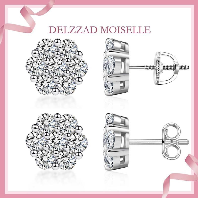Delzzad S925 Flower Stud Earrings VVS Synthetic Moissanite Screw Back/Butterf...