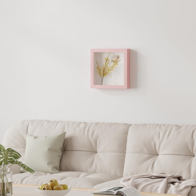 DEMAIKE 8x8 Shadow Box Frame Display Case with Real Glass, 3D Picture Frame for Memorabilia, Crafts, Photos, Wedding (Pink)