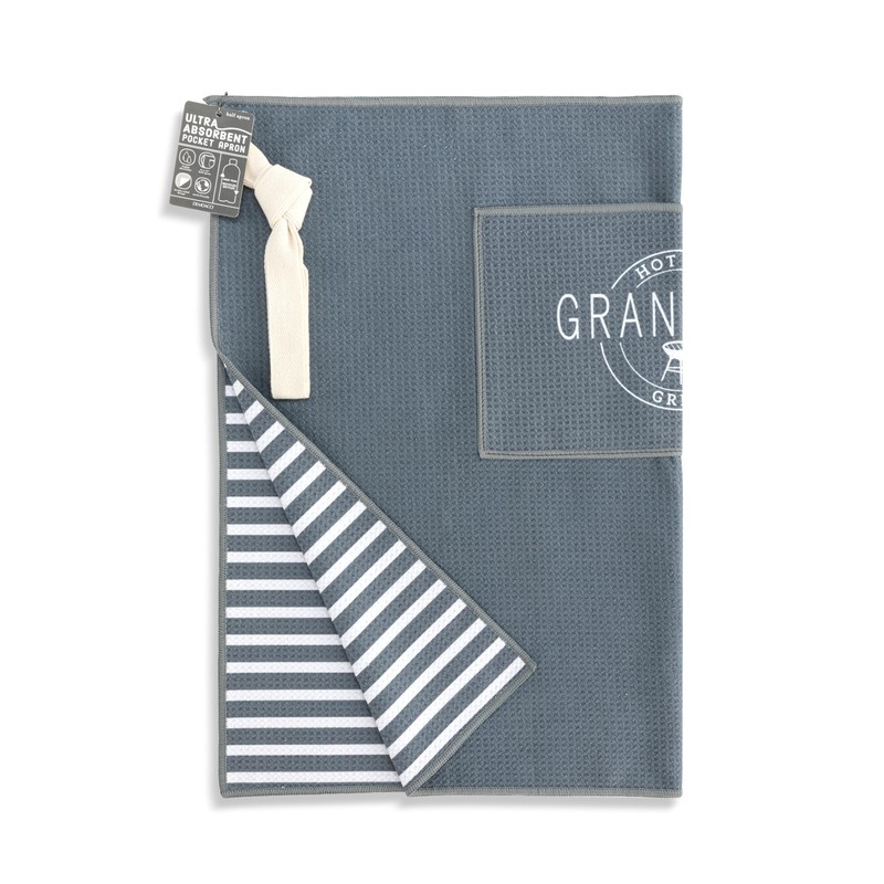 DEMDACO Absorbent Reversible Half Apron With Pocket, 27 x 20 Inch Polyester, Grandpa's Grill, Grey/White, 27 x 20 Inch