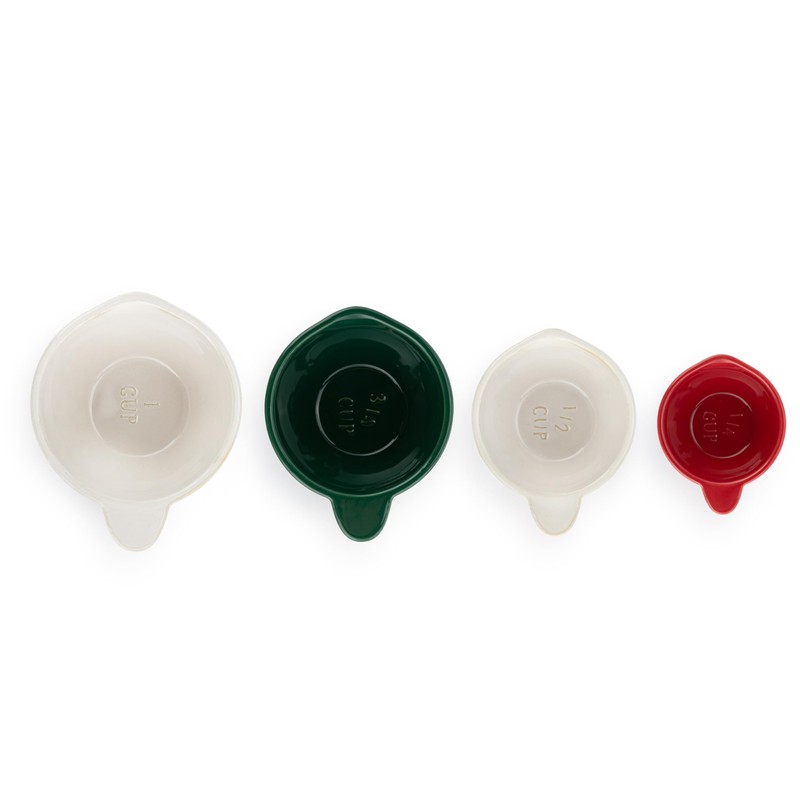 DEMDACO Baking Holiday Memories Red, Green, White Glossy Ceramic Stoneware Festive Christmas Kitchen Accessory, Embossed Detail, Christmas Measuring Spoons, Set of 4