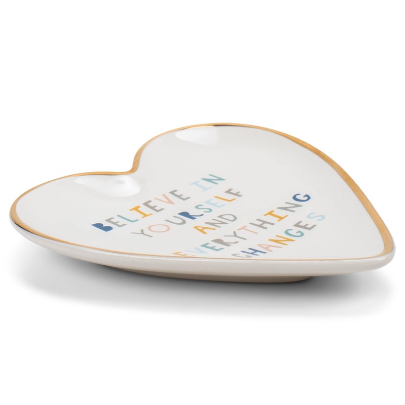 DEMDACO Believe Yourself White 4 x 3.5 Ceramic Stoneware Art Heart Trinket Dish