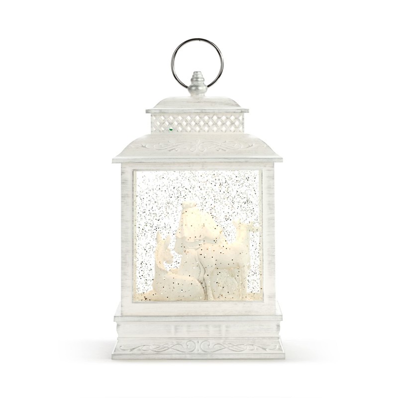 - Celebrate life’s most meaningful moments with this collection of accessories while commemorating favorite holiday memories along the way; This distressed designed winter white lantern features a nativity scene