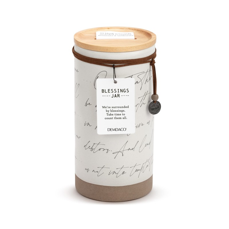 - With a loving sentiment that reads, "Our Father, in heaven, hallowed be your name; Thy kingdom come; Thy will be done on earth as it is in heaven; Give us this day our daily bread and forgive us, lead us not into temptation, but deliver us from evil; Amen" this Blessings Jar includes 25 notecards to help you count your blessings or encourage a loved one with words of affirmation