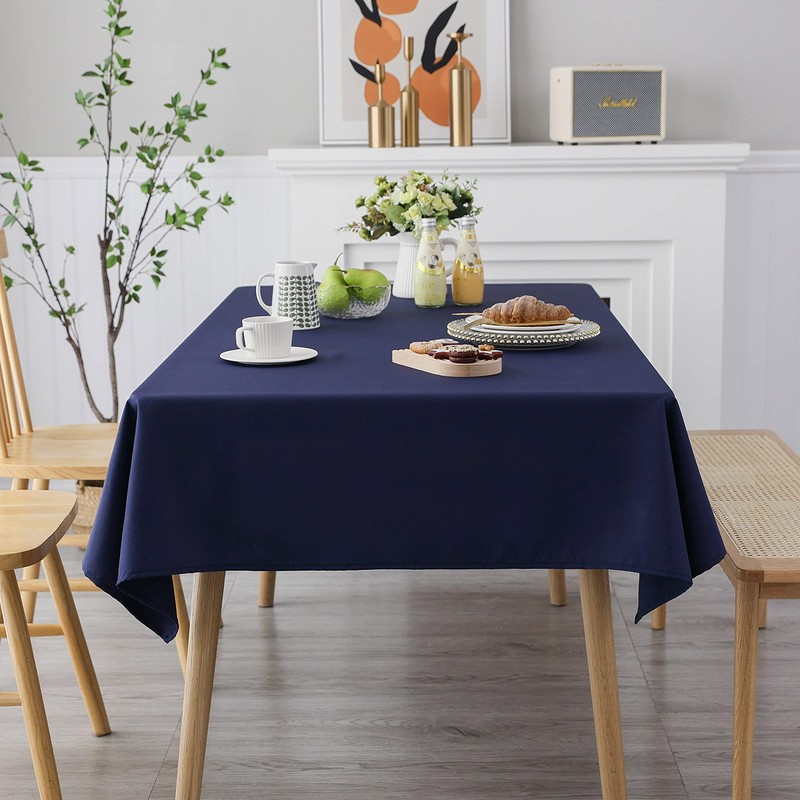 Demetex Wipeable Polyester Tablecloth 152x259 cm Washable Navy Fabric Table Cloth Rectangular Water Resistant Table Cover for Picnic Banquet Hall Restaurant, 152cm x 259cm, 1 Pc, Navy Blue