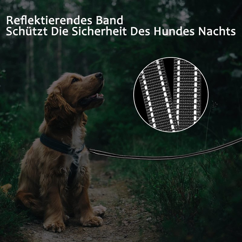 - Rotating heavy duty hook: well made, it is made of stainless steel metal. The connection between thread and hook is done via double thread seams, which are stable and durable and can withstand strong tension. The 360° rotating safety hook is easy to use and attaches to the collar easily and quickly, allowing your dog to play freely without falling off easily.