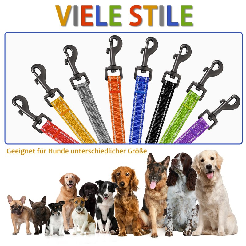 - Ideal dog lead: offer different lengths of 3 m/10 ft, 5 m/16 ft, 10 m/32 ft, 15 m/50 ft, 20 m/65 ft and 8 beautiful colours: black, grey, dark blue, orange, yellow, red, purple and green. Please choose different lengths according to your needs that give your dog extra freedom. Bright colours can help you find the dog better. Our dog training lead is perfect for hiking, mountaineering, camping, tracking recall training, backyard, swimming and more!