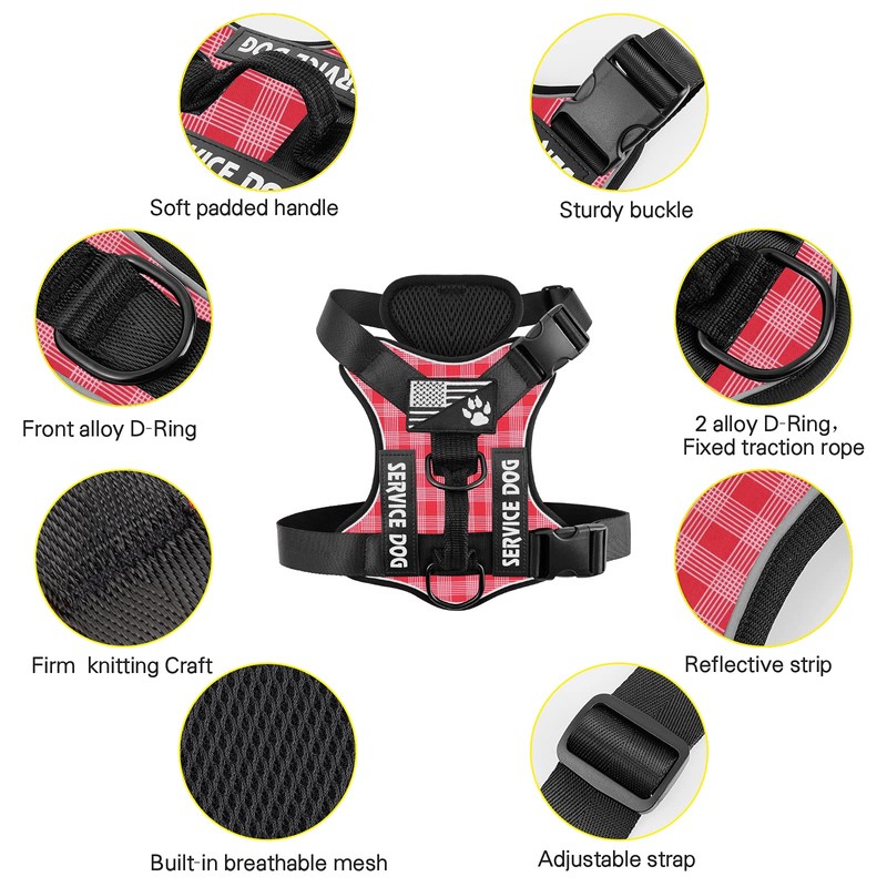 Demigreat Service Dog Harness, Reflective Dog Vest Harness with 5 PCS Patches, Adjustable Soft Oxford Pet Harness, Inner Layer Mesh, Easy to Control for Dogs