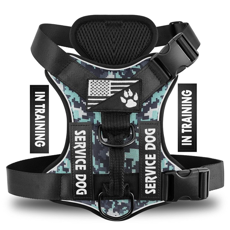 - 【Reflective Dog Harness】- The reflective tape of the Damigreat dog harness can reflect ambient light in extreme low light conditions, so as to ensure that your dog can stay visible even when walking or running at night, and comes with 2 service dog patches, 2 in training patches and 1 dog paw patch.