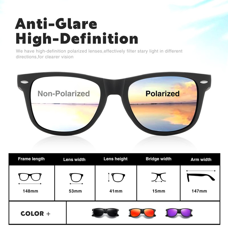 - [Nice Quality]:Built with nice quality materials for active souls,featuring flexible lightweight frames, our polarized sunglasses are comfortable to wear, do not cause uncomfortable squeezing of the face. Reliable, lightweight and fashionable for daily activities
