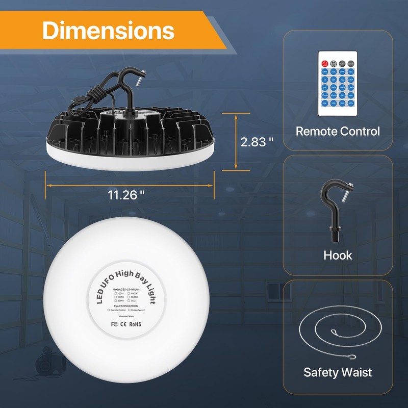 • Advanced Motion Sensor Technology: Our high bay LED shop lights are equipped with a motion sensor that automatically activates when you enter the room. This feature not only enhances convenience but also promotes energy savings while ensuring your space is always well-lit.