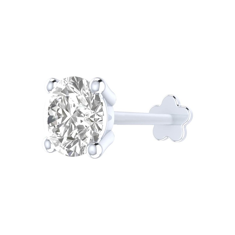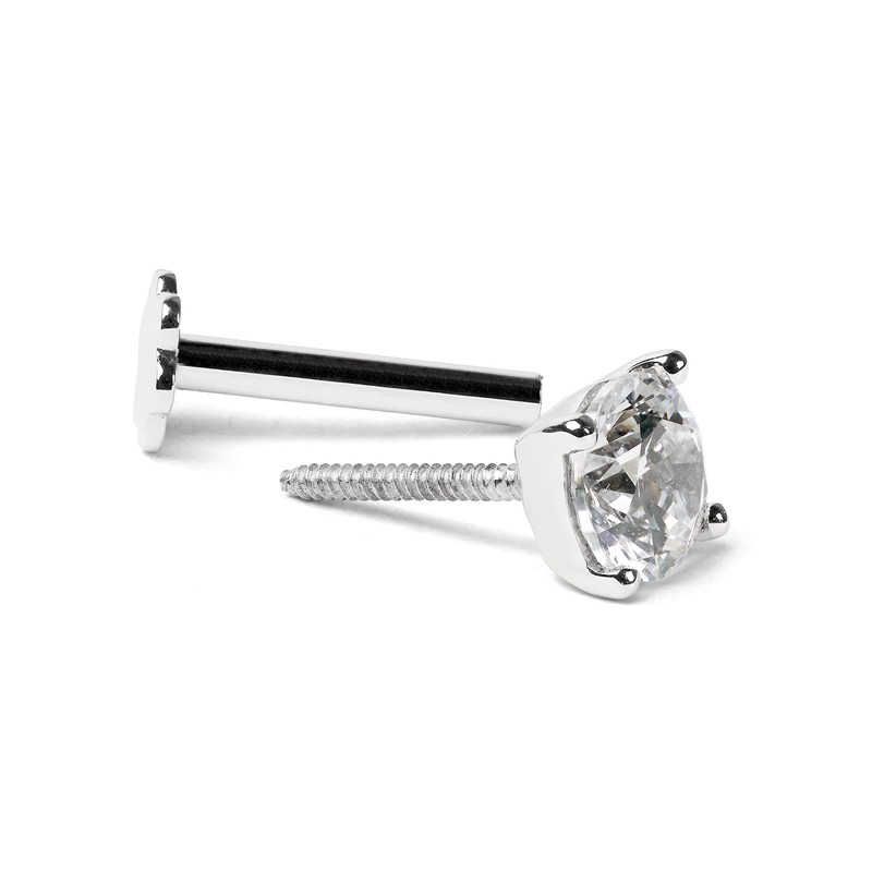 Demira 14K White Gold Lip Labret Monroe Ring Targus Pin Nose Stud with Cubic Zirconia Solitaire; Internally Threaded Screw Post, 4.1MM, Sterling Silver, cubic zirconia