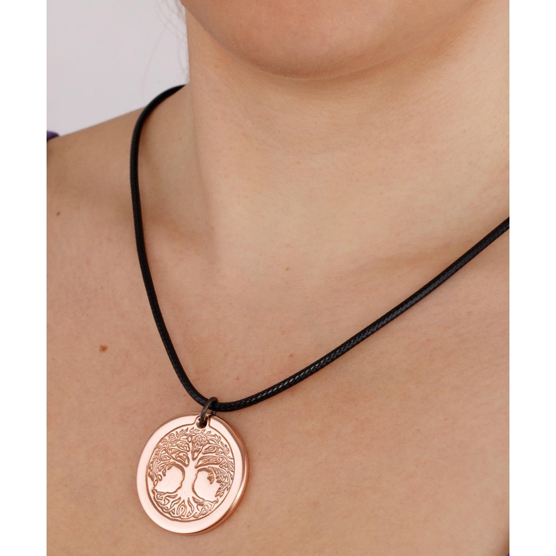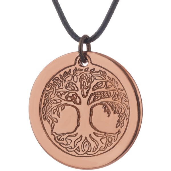 DEMMEX Solid Copper Tree of Life Pendant Necklace, 2.5mm Thick, 1.5 Inches Diameter, Uncoated, Unisex, Handmade in Turkey, Copper, No Gemstone