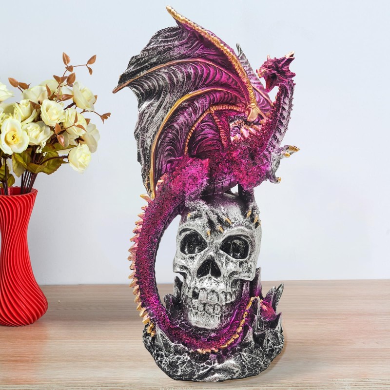 - 【Unique Design】The whole product is in purple color, full of dark style styling design, vivid and realistic image, rich details, gothic beauty, exudes an eerie atmosphere, adding color to your Halloween and horror decorations. The purple dragon hovers over the skull with a clear texture. This Purple Dragon Skull Decoration is eye-catching and will satisfy your curiosity and decorative needs.