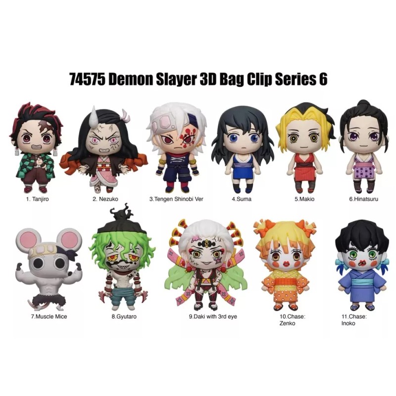 Collect your favorite Demon Slayer characters! Clip them on your keys, purse, backpack -- just about anywhere! Each figure measures about 2- 3 inches tall. Comes with mylar bag.