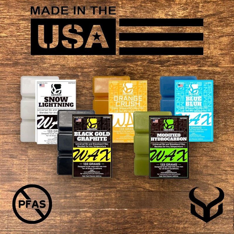 • Includes 1.06 lbs of Demon Hyper Wx Designed for Universal Snow Temperatures & Nylon Brush. A Ski or Snowboard Wax job should take between 12 and 18 grams of wax giving you enough wax for 20-30 ski or snowboards waxes.