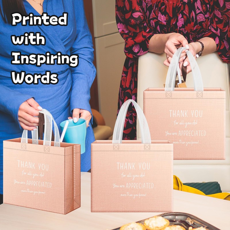 Demonwer 24 Pcs Glossy Rose Gold Gift Bags 12.6×11.0×4.7 Inch Reusable Gift Bag Inspirational Employee Appreciation Wrap Bags with Handle Thank You Gift Bags for Teacher Coworker Staff Volunteer Team