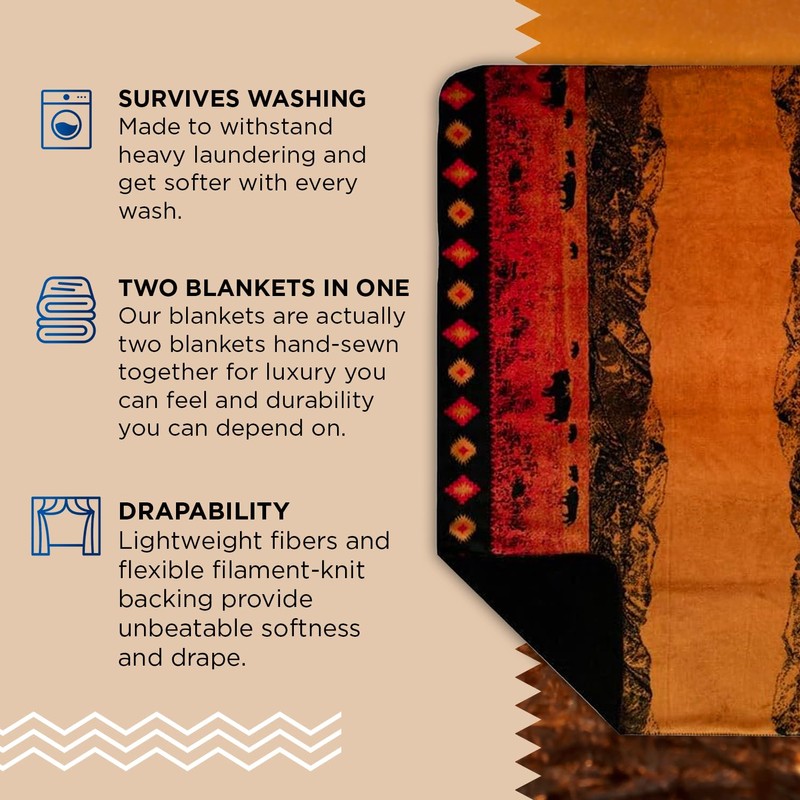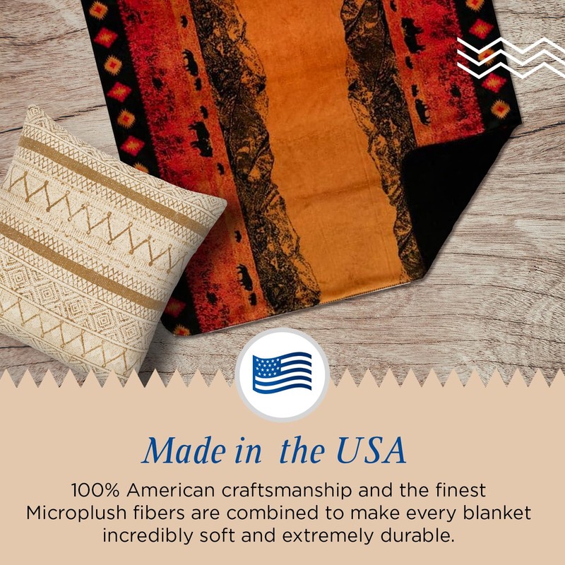• ULTIMATE COMFORT: Give yourself or a loved one the luxury and comfort of a Denali blanket, it's like wrapping yourself in a cloud! Step back with this design to a time of roaming buffalo and honest work rewarded by sunset colors. Feel the quality of Denali blankets with every fiber and enjoy a relaxing experience no matter the occasion!