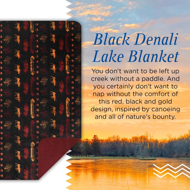 - ULTIMATE COMFORT: Give yourself or a loved one the luxury and comfort of a Denali blanket, it's like wrapping yourself in a cloud! Make sure you're always comfortable with this red, black, and gold design, inspired by the beauty and adventure of canoeing. Feel the quality of Denali blankets with every fiber and enjoy a relaxing experience no matter the occasion!