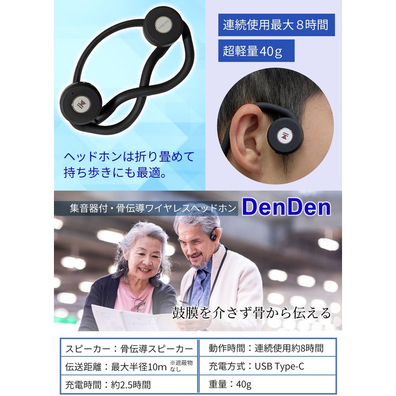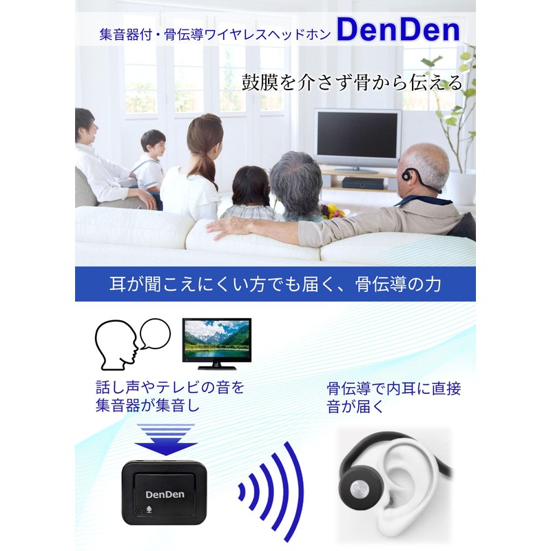 集音器 付 骨伝導 ヘッドホン DenDen デンデン アップデート版【鼓膜を介さず音が聞こえる】 ワイヤレス イヤホン 集音機 Bluetooth 軽量 (DenDen)