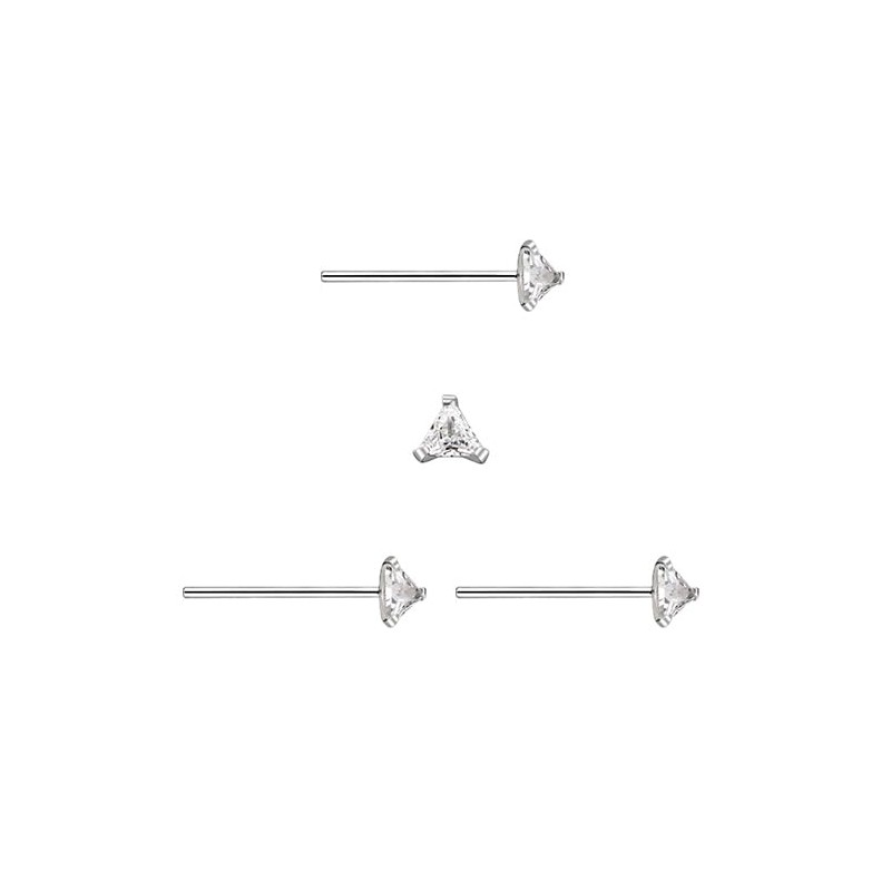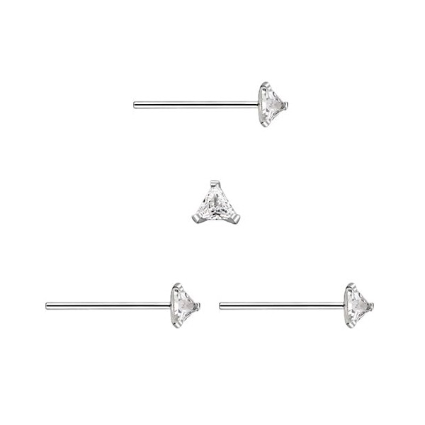 • 3 x Silver Nose Studs Triangle Cubic Zirconia Shiny 4mm Fine Bar 0.6mm