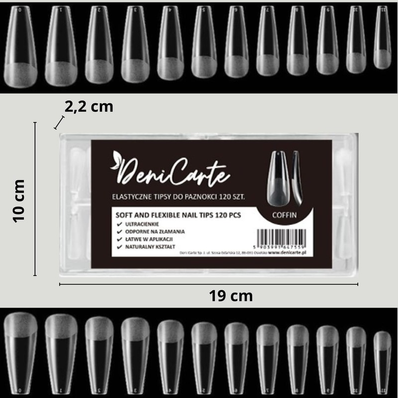 Deni Carte 120 Stück Nageltips Coffin für Soak-Off-Nagelverlängerungen, Flexi Nail Tips Weiches Gel Acryl Falsch Volle Deckung Klares Nagelspitzen für Nagelstudios und Maniküre, 12 Größen